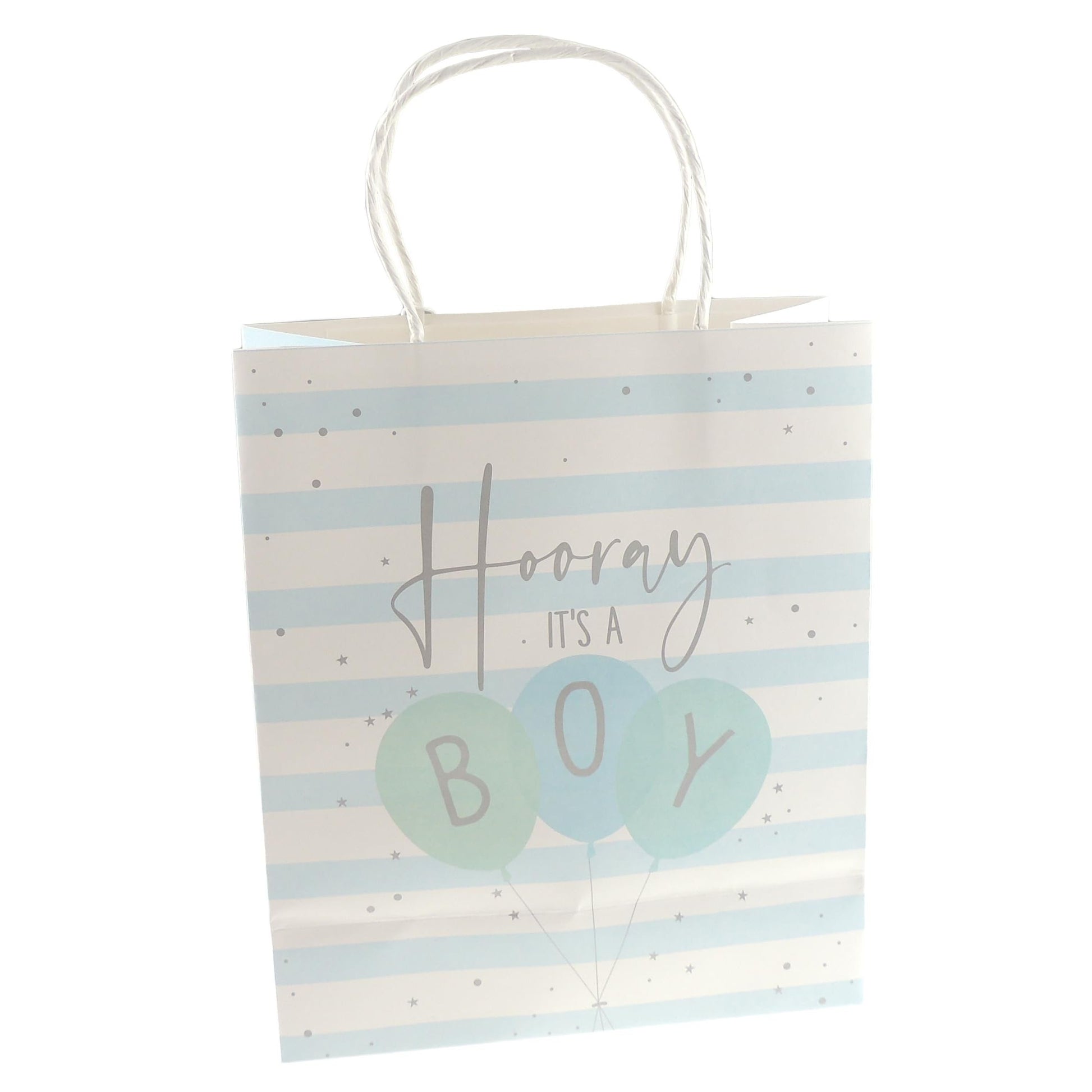 Christening Baptism New Baby Birth Newborn Party Shower Pink Blue With Balloons Baby Girl Boy Hooray Gift Wrap Occasion Present Paper Bag (Blue, Small)