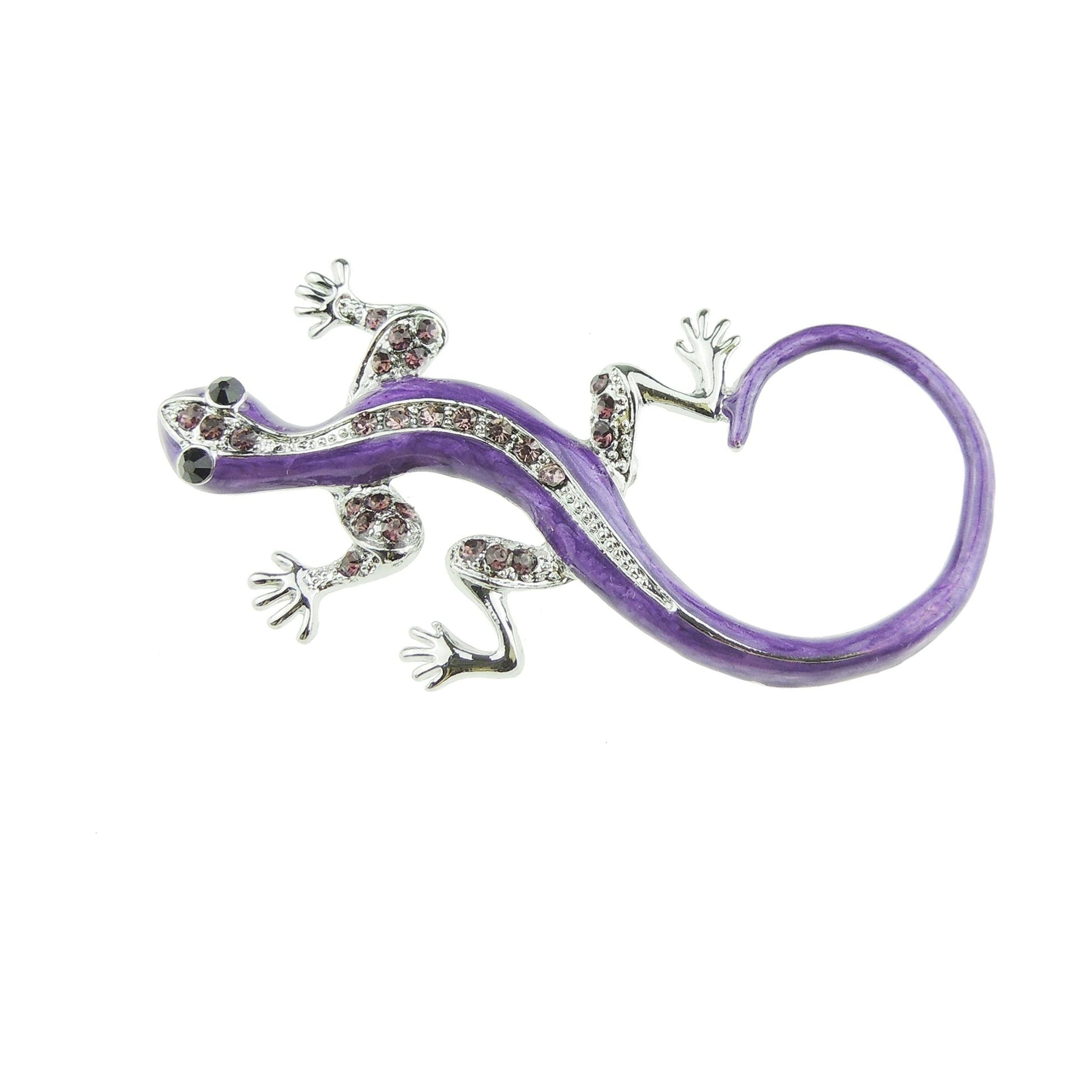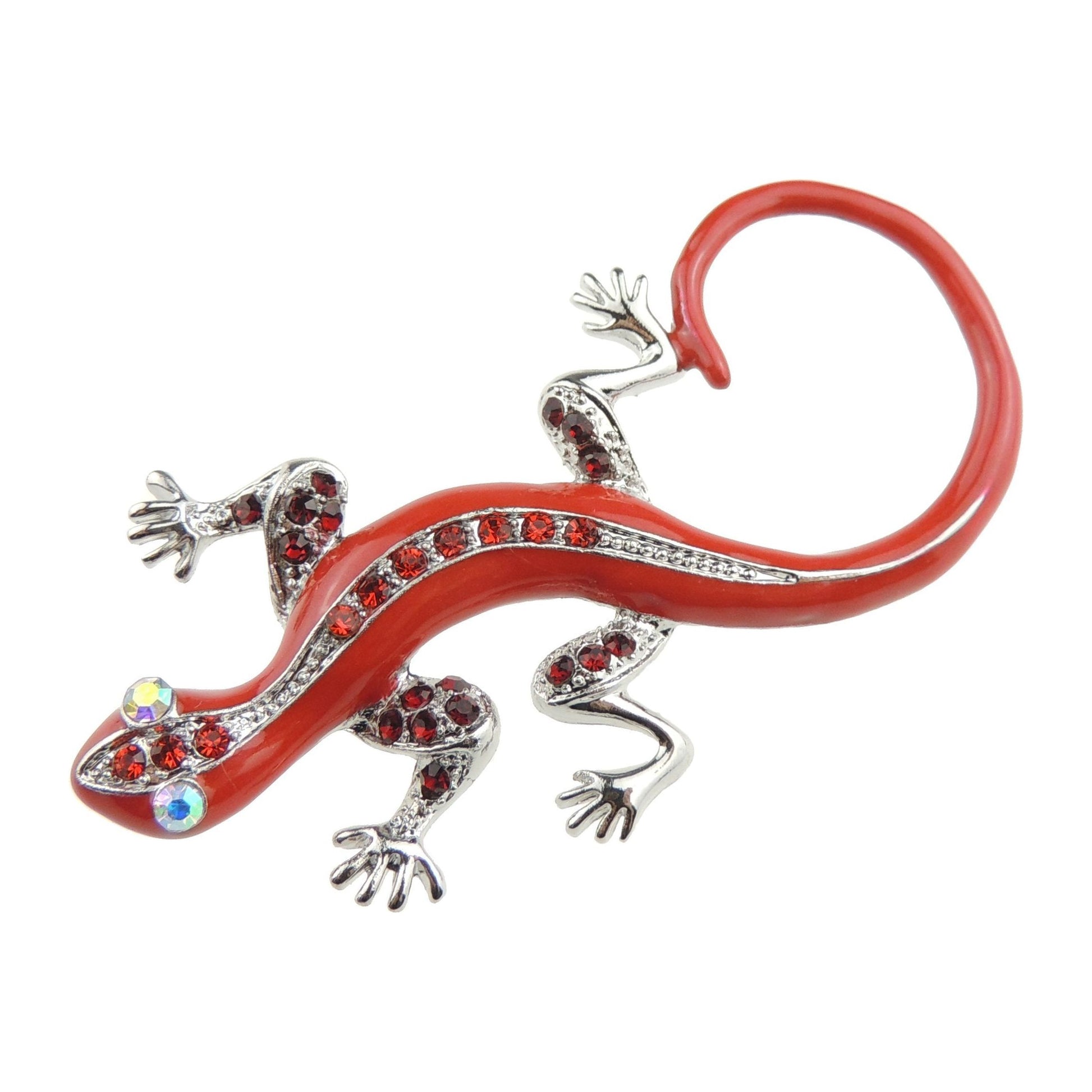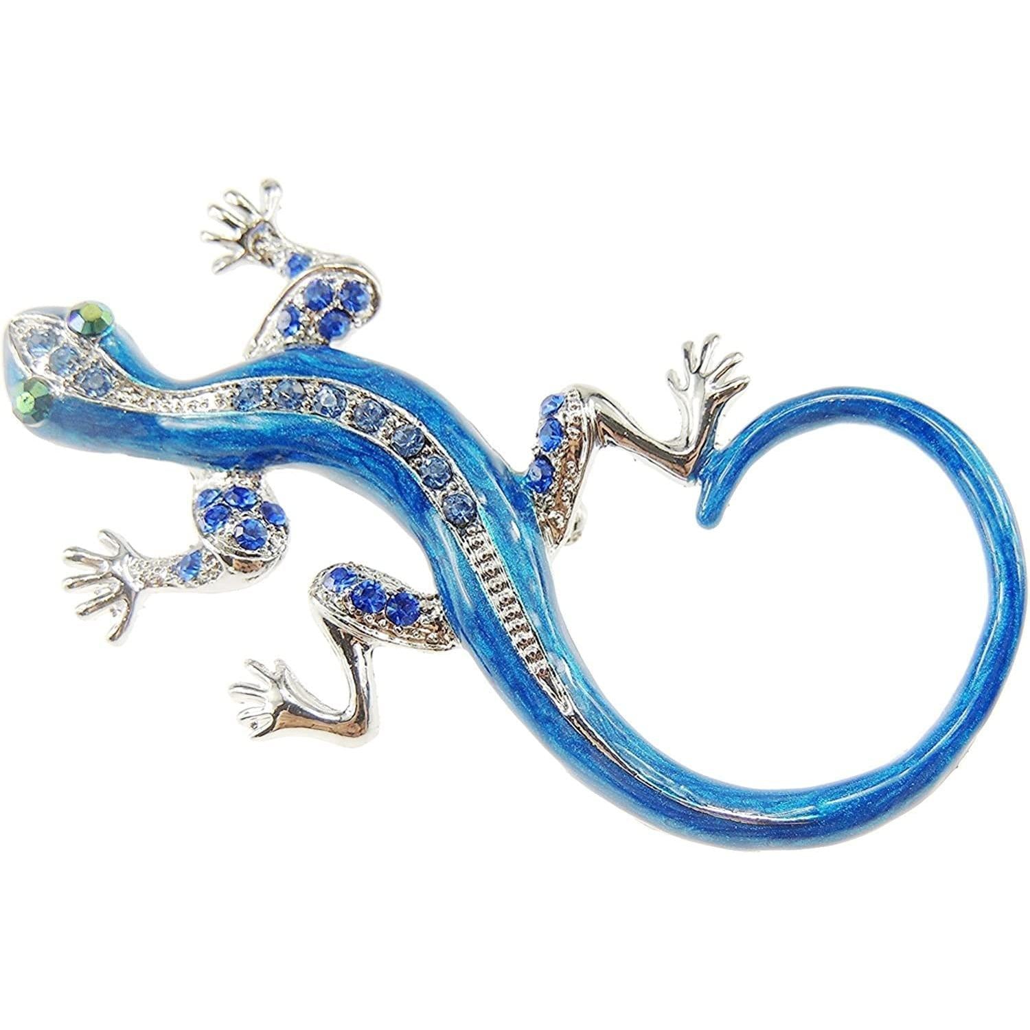 Cute Womens Mens Enamel Crystal RHinestone Gecko Lizard Iguana Reptile Lover Christmas Birthday Hijab Lapel Dress Gift Scarf Wedding Formal Occasion Blue White Green Brooch Badge Pin Boxed