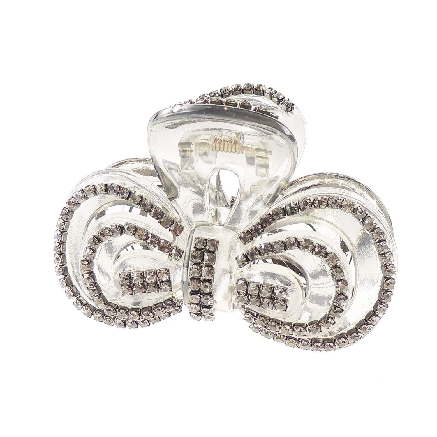 Extra Sparkly Women Girls Crystal Diamante Rhinestone Gems Bridal Wedding Evening Party Styling Fine Thin Hair Accessories Butterfly Claw Jaw Clip Octopus Clamp 8cm SIlver Tone Bow (Clear)