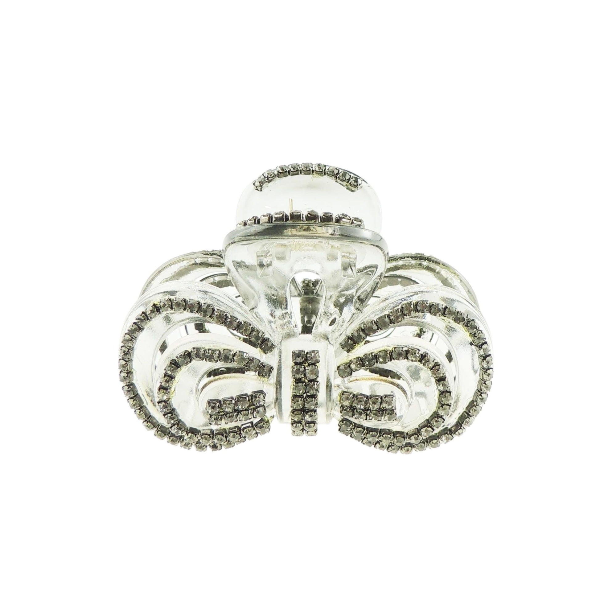 Glamour Girlz Ladies Clear Silver Tone Clear Diamante Crystal Bow Bulldog Crab Hair Clamp Claw.