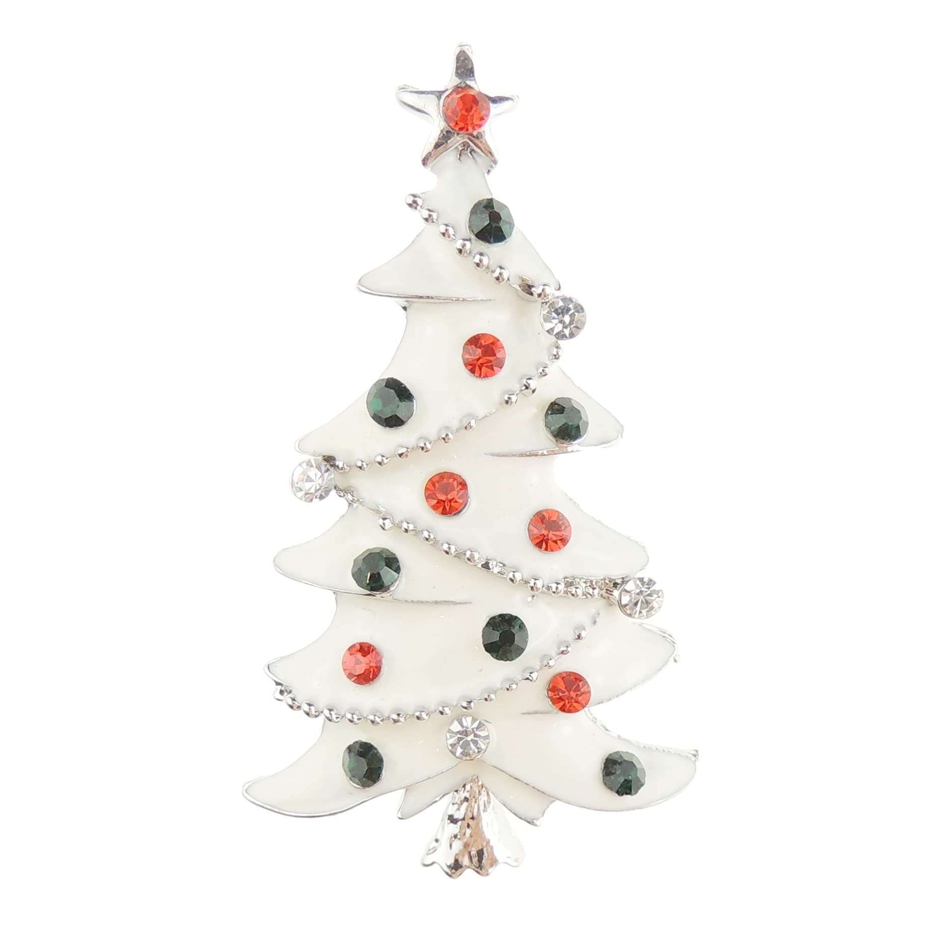 Festive Christmas Season Gift Coat Scarf Coat Jacket Shawl Scarf Enamel Diamante Rhinestone Crystal Brooch Badge Breastpin Corsage Pin Xmas Colour White Tree Baubles