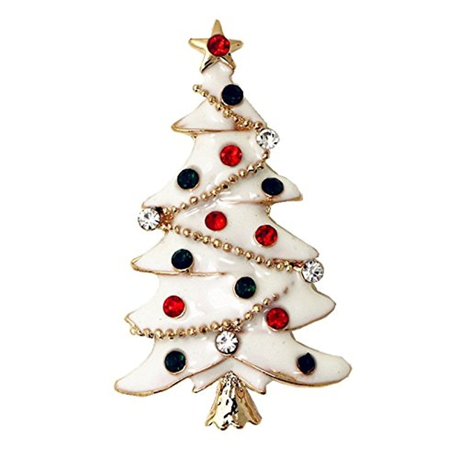Festive Christmas Season Gift Coat Scarf Coat Jacket Shawl Scarf Enamel Diamante Rhinestone Crystal Brooch Badge Breastpin Corsage Pin Xmas Colour White Tree Baubles