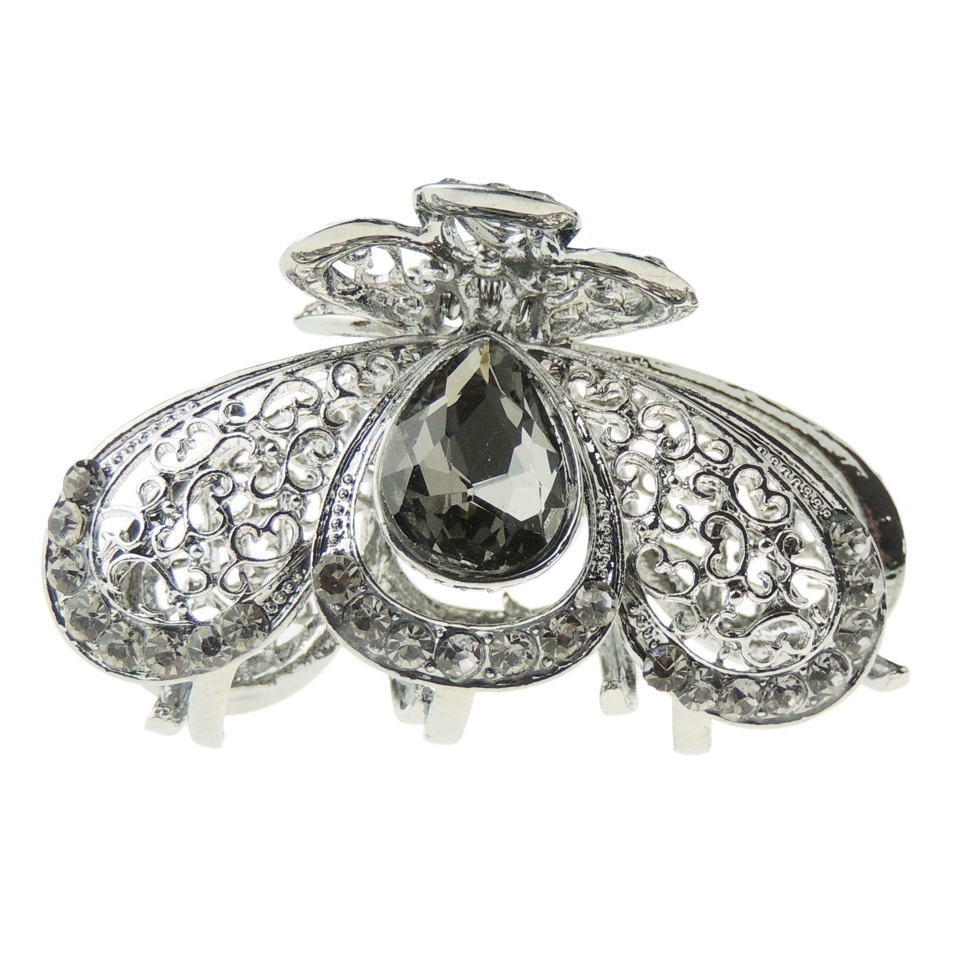 Womens Girls Crystal Rhinestone Diamante Bridal Wedding Guest Party Birthday Hair Accessories Bulldog Crab Octopus Styling Hair Claw Clamp Clip Small Dark Grey Metal Peacock Feather