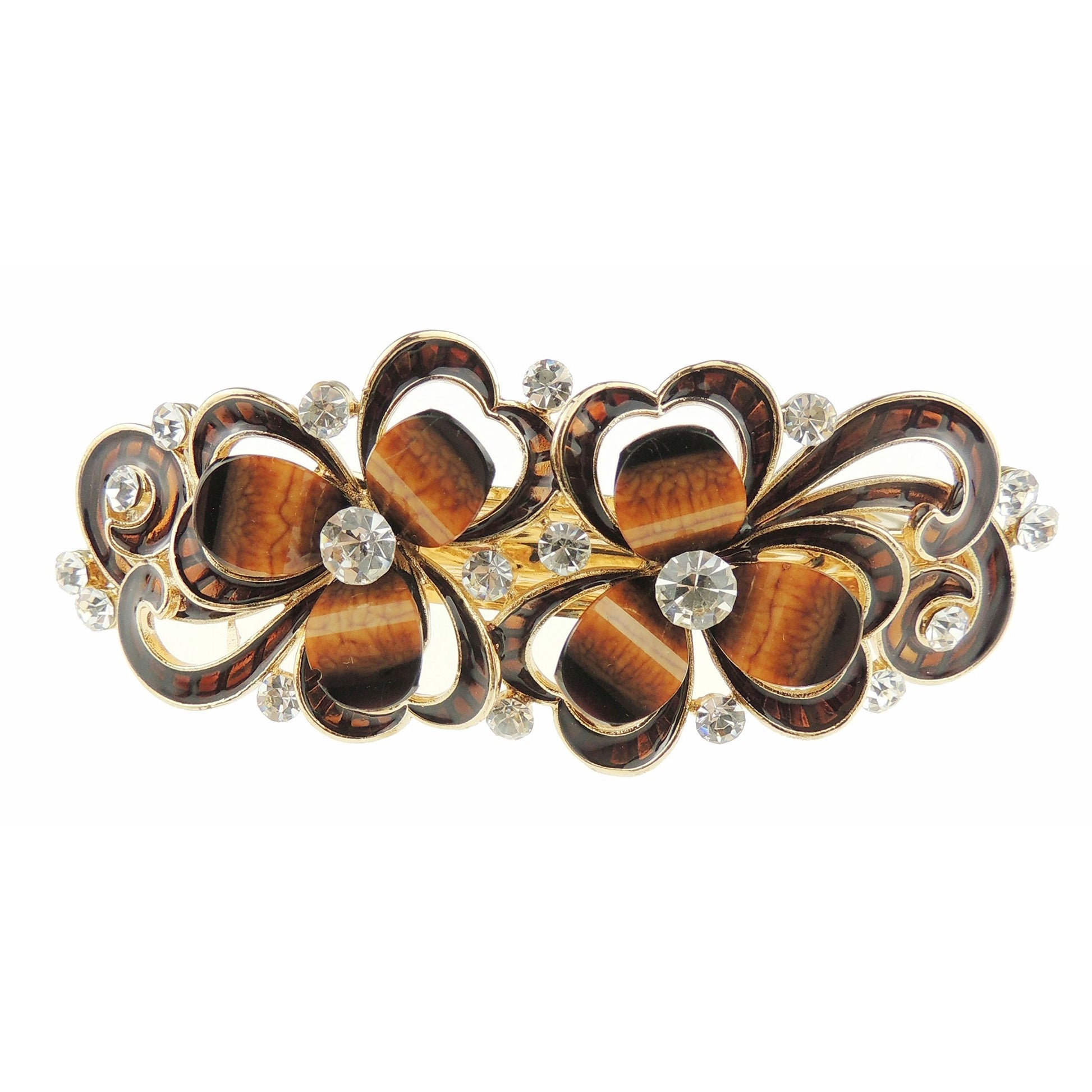 Ladies Enamel & Diamante Evening Occasion Stencil Hair Barrette Clip Two Flowers Blue