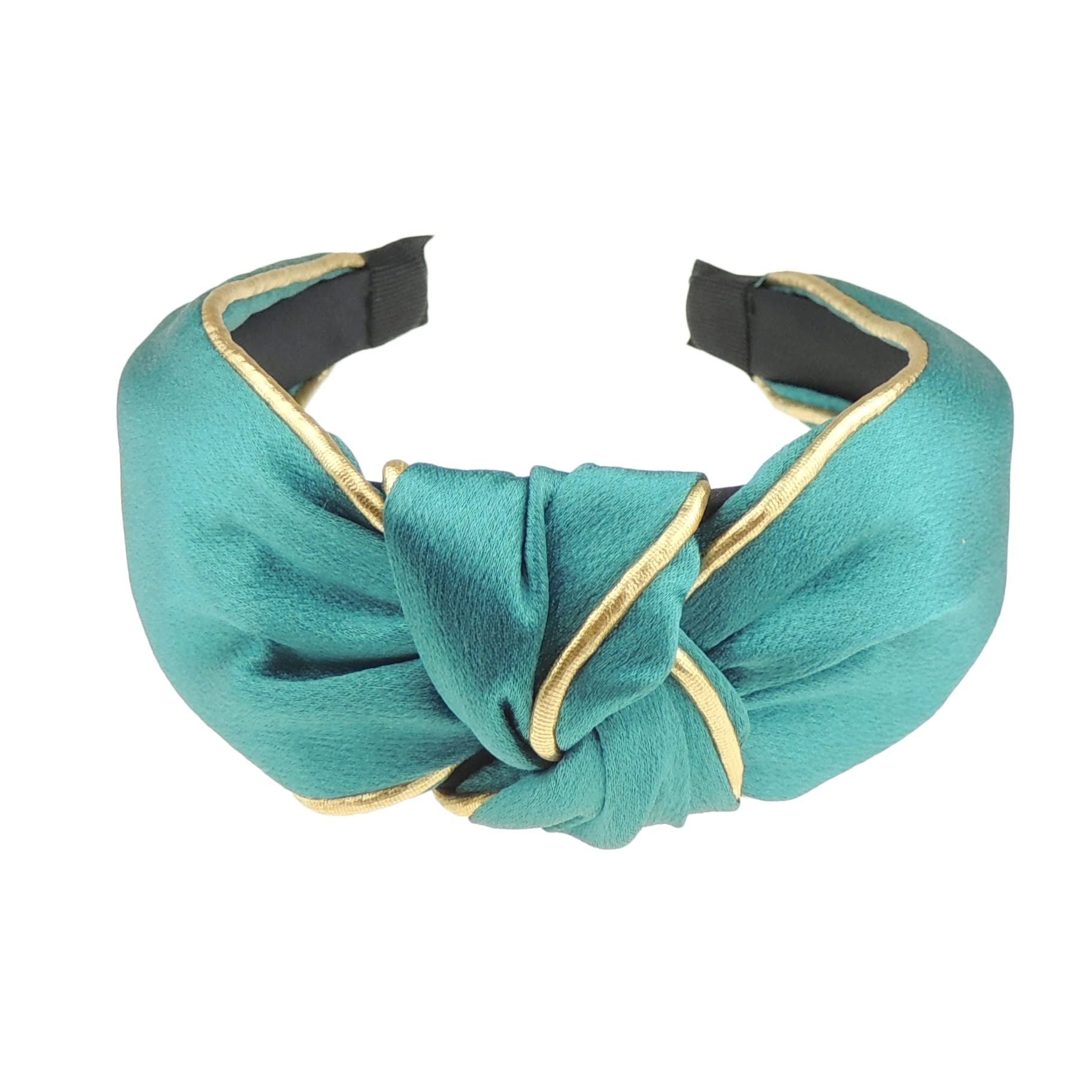 Gold Trim Satin Evening Fancy Top Knot Knotted Twist Twisted Turban Wide Thick Fashion Formal Boho Vintage Headband Alice Band For Women, Alice Band,Hair Accessories Hairband For Christmas Birthday Wedding Guest Bridesmaid Party
