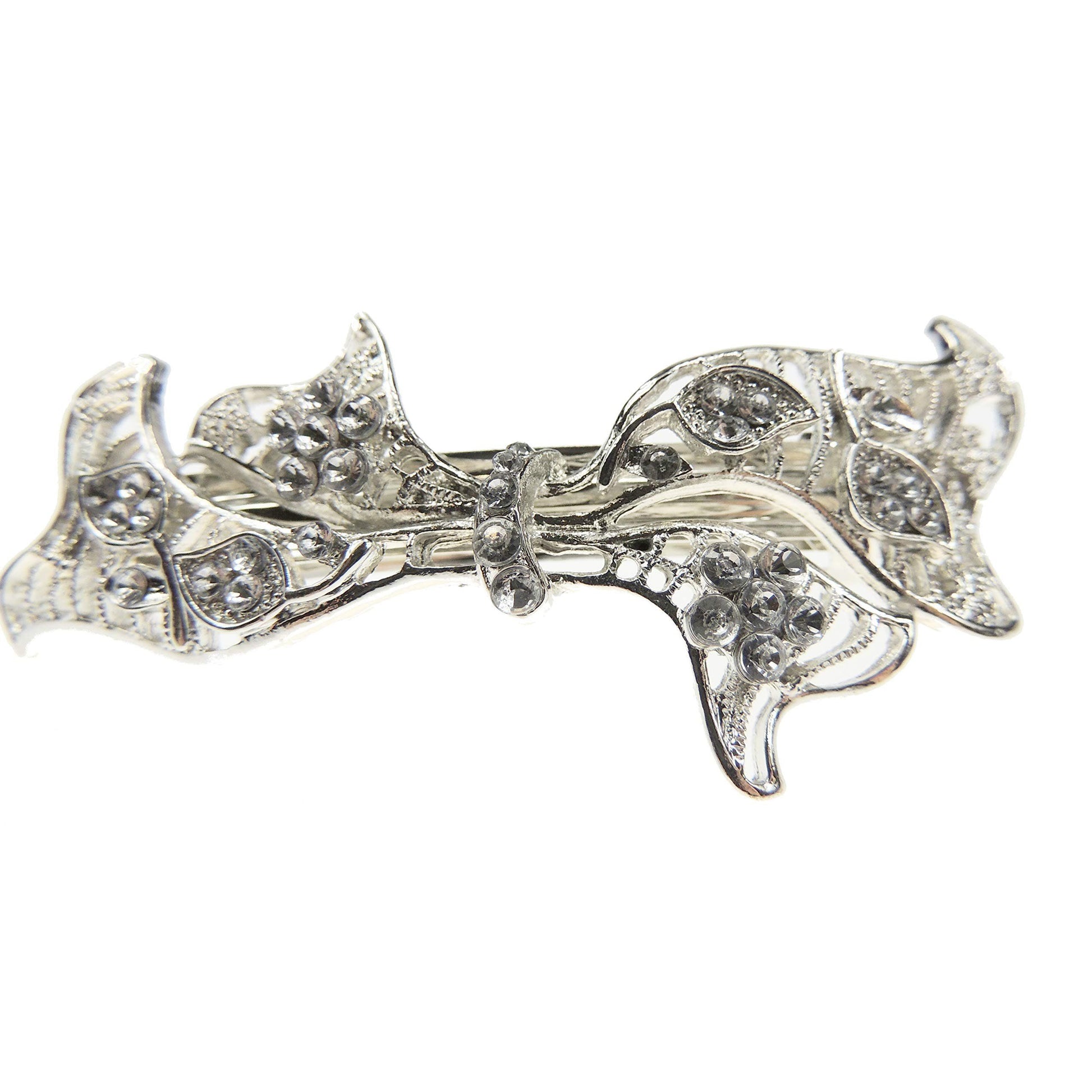 Glamour Girlz Ladies Girls Silver Tone Vintage Flower Hair Clip Barrette Stencil Bow
