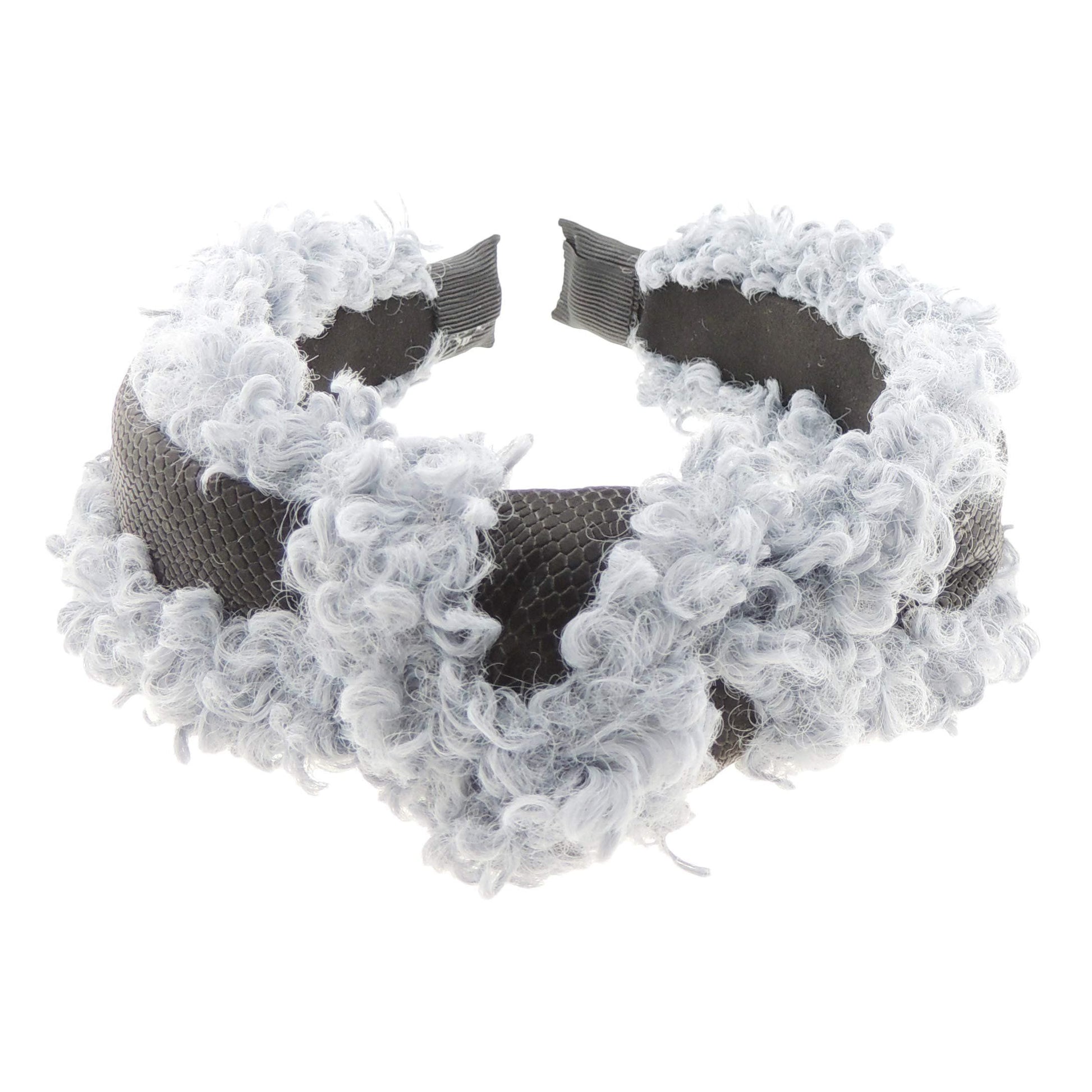 Womens Girls Soft Furry Fluffy Black Central Ribbon Trim Wool Look Top Knot Twist Wide Thick Fashion Formal Evening Boho Vintage Headband Alice Band Hair Hairband Accessory