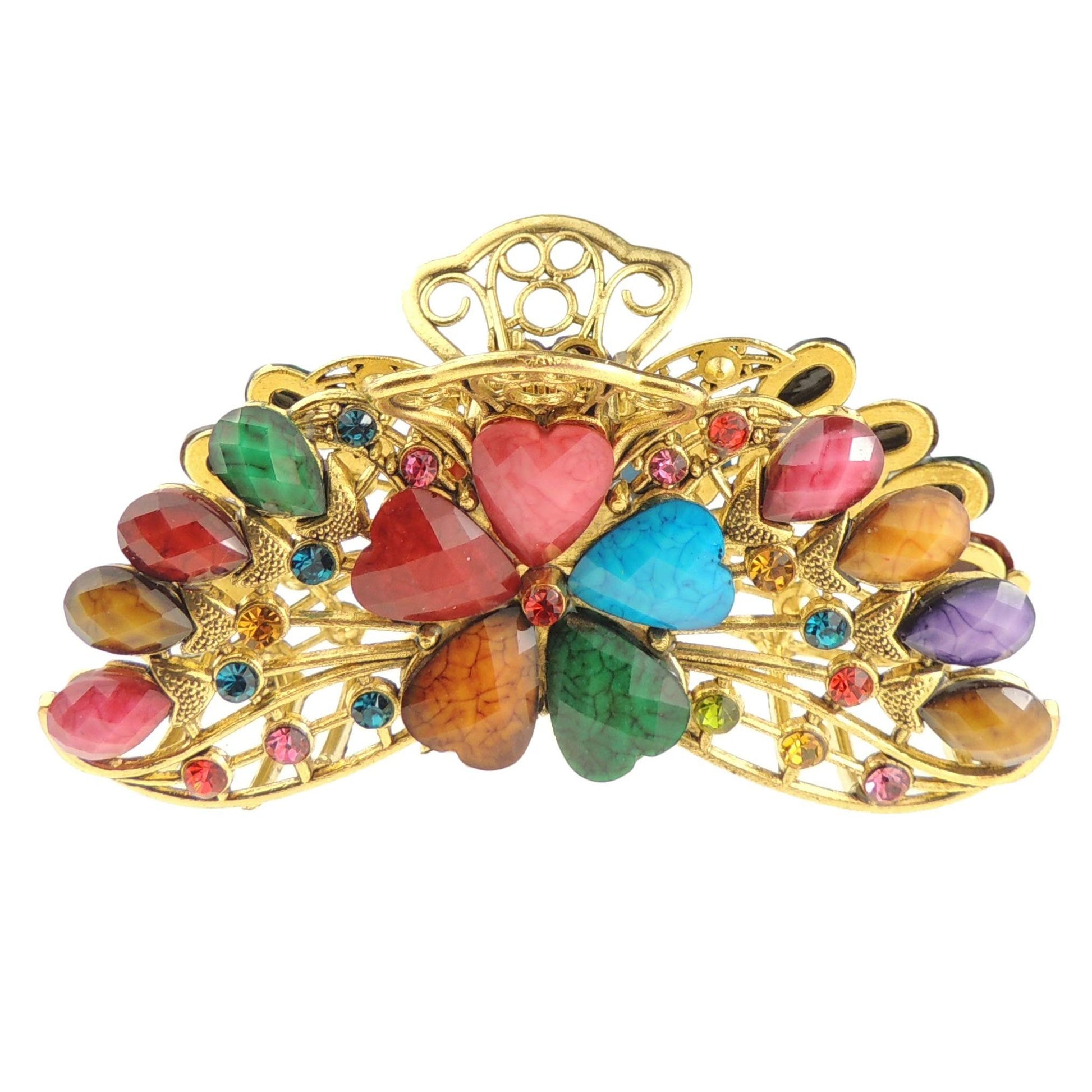 Womens Girls Vintage Look Crystal Diamante Bridal Wedding Party Bridesmaid Birthday Metal Hair Bulldog Crab Octopus Jaw Styling Claw Clamp Clip Gold Tone 9cm Large Rose Daisy Flower