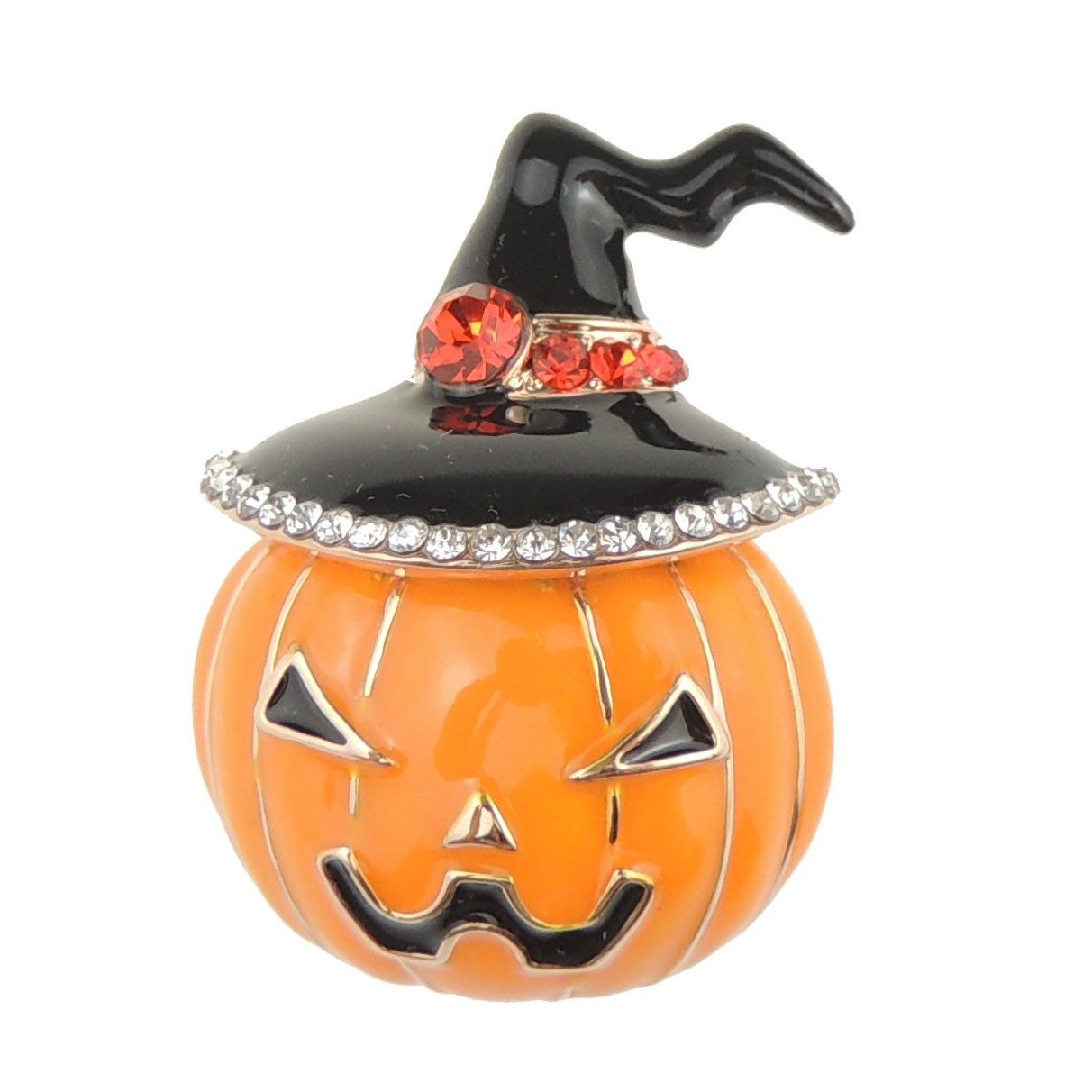 Mens Womens Christmas Party Birthday Gift Saree Scarf Diamante Rhinestone Crystal Fancy Dress Bling Brooch Badge Breastpin Corsage Pin Halloween Orange Black Jack O Lantern Pumpkin Witch Hat