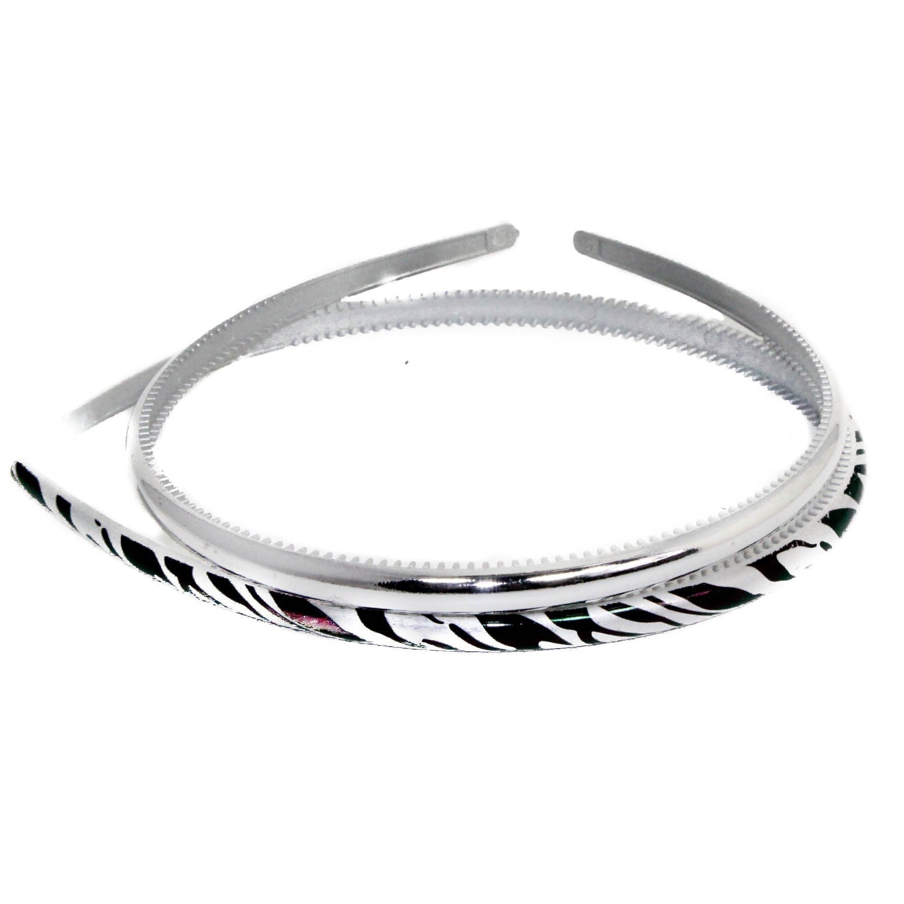 Set of 2 GIRLS Kids Childrens DIY Dance Recital Play Birthday Party School Uniform Wedding Special Occasion Hair Accessories Narrow Plastic Animal Zebra Silver Print 1cm Short Long Hair Headband Alice Band Hairband