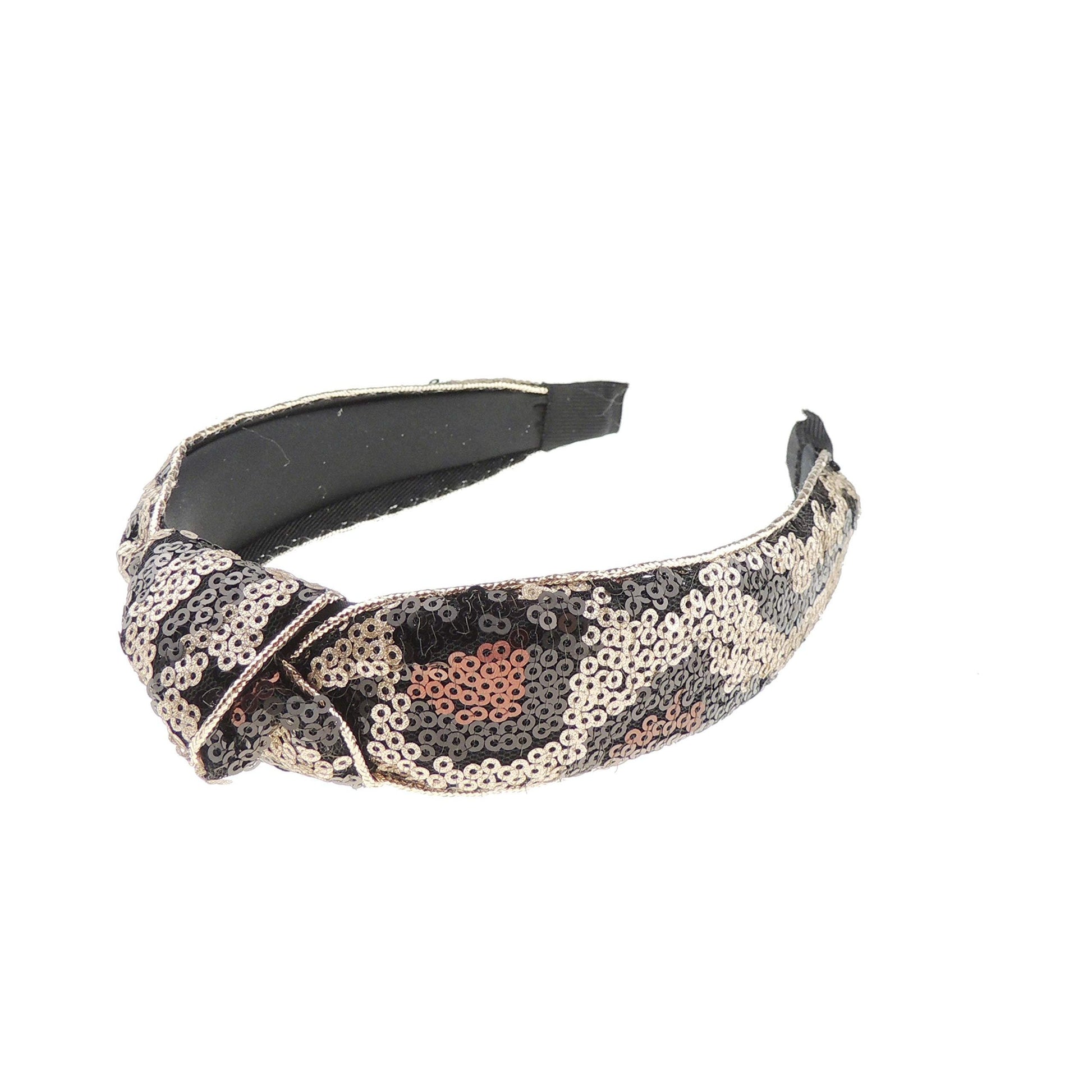 Glamour Girlz Ladies Leopard Animal Print Sparkly Gold Sequin Evening Party Top Knot Headband Alice Band
