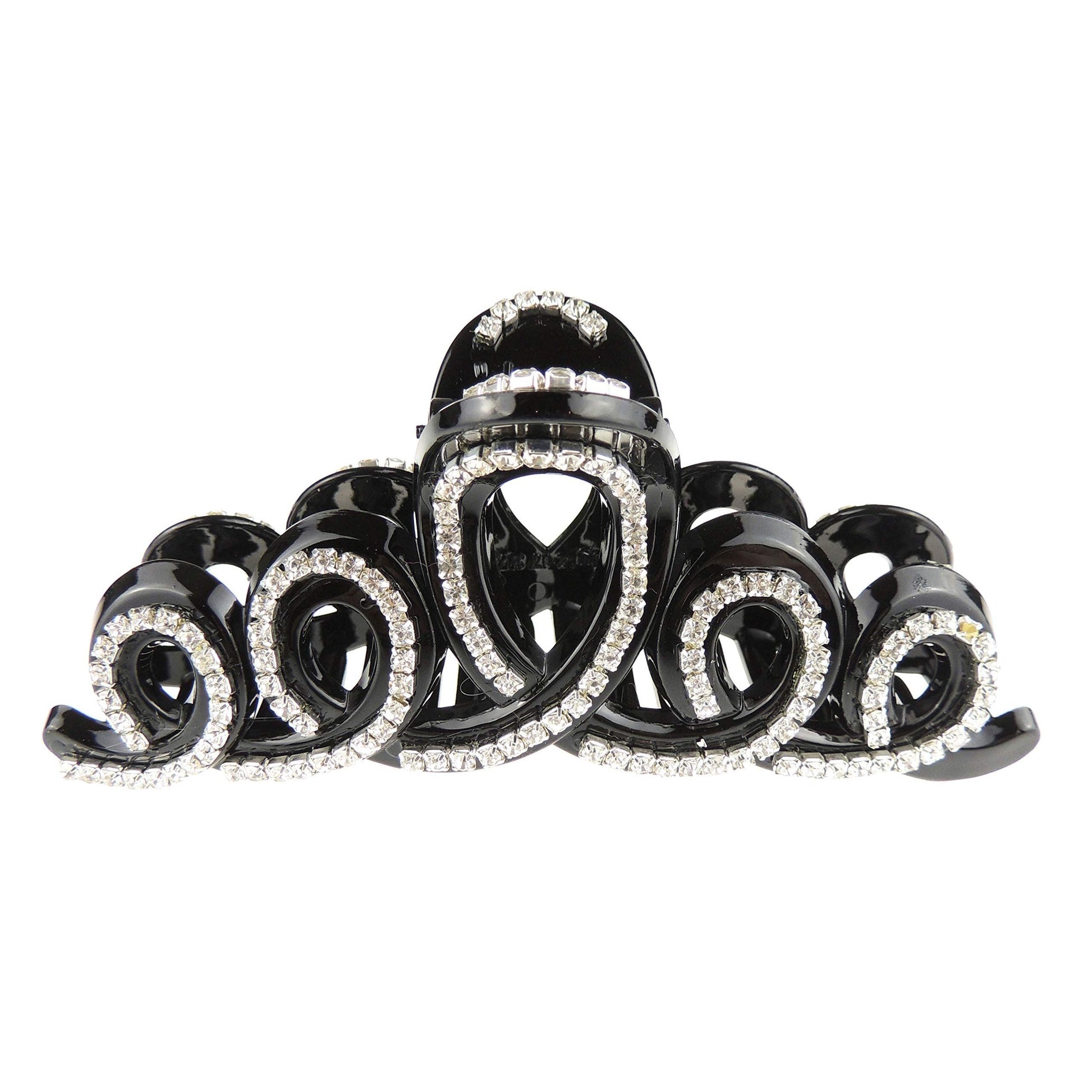 Sparkly Women Girls Thick Curly Long Hair X-Large Big Crystal Diamante Rhinestone Gems Bulldog Wave Jaw Clip Octopus Clamp Grip Bridal Wedding Party Styling Claw Butterfly Claw Swirly Doodles