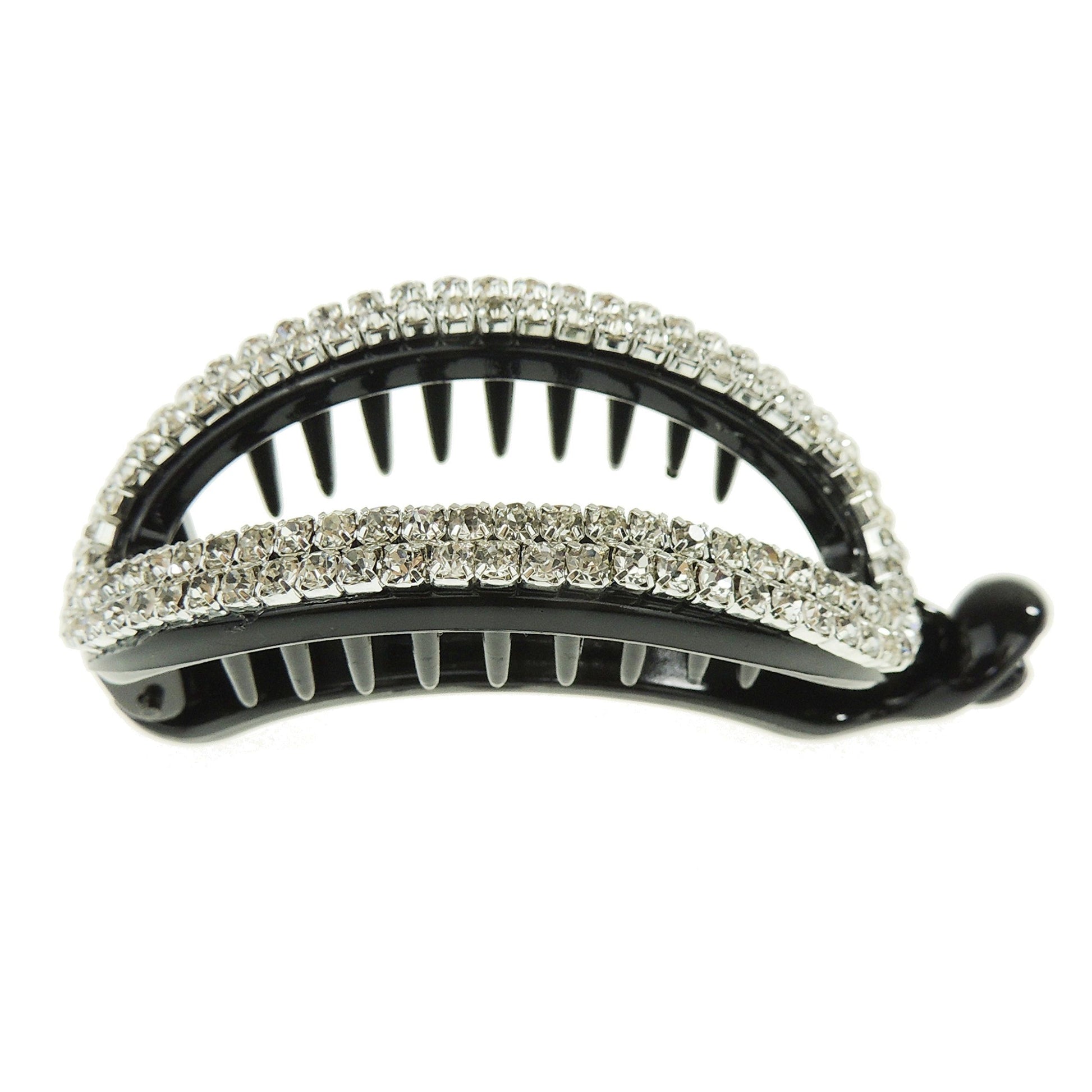 Sparkly Womens Girls Crystal Rhinestone Diamante Bridal Wedding Guest Christmas Party Bridesmaid Birthday Hair Accessories Banana Wide Cuff Styling Ponytail Hair Barrette Grip Claw Clamp SMALL (Black)