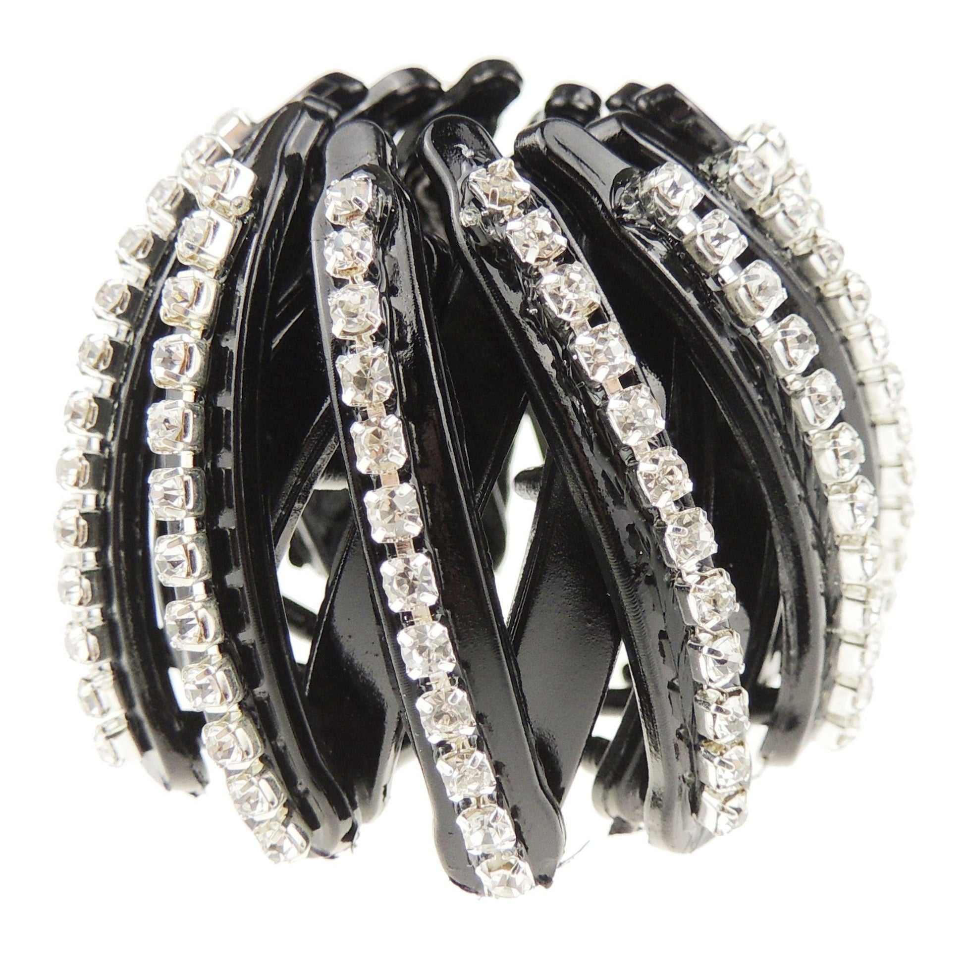 Womens Bridal Wedding Party Christmas Styling Hair Accessories Pins Bun Expandable Holder Pony Tail Chignon Brooch Hairpin Jewelry Updo Chopsticks Stick Vintage Look Diamante Crystal (Black Small)
