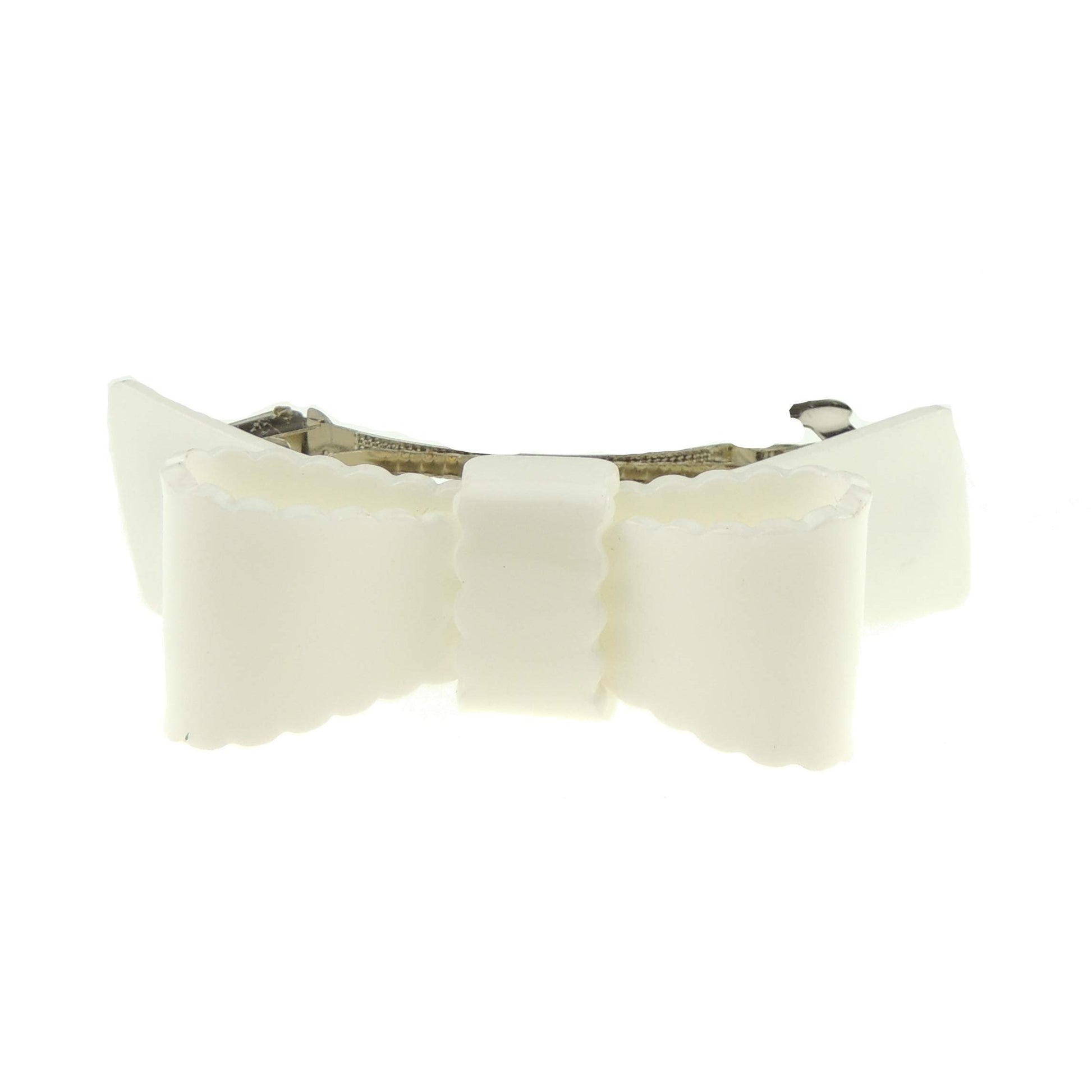 Womens Girls Classic Plain Double Bow Ruffled Edge Acrylic Wedding Birthday Party Evening Ponytail Fine Medium Hair Accessories Occasion Barrette Hairpin French Spring Clip