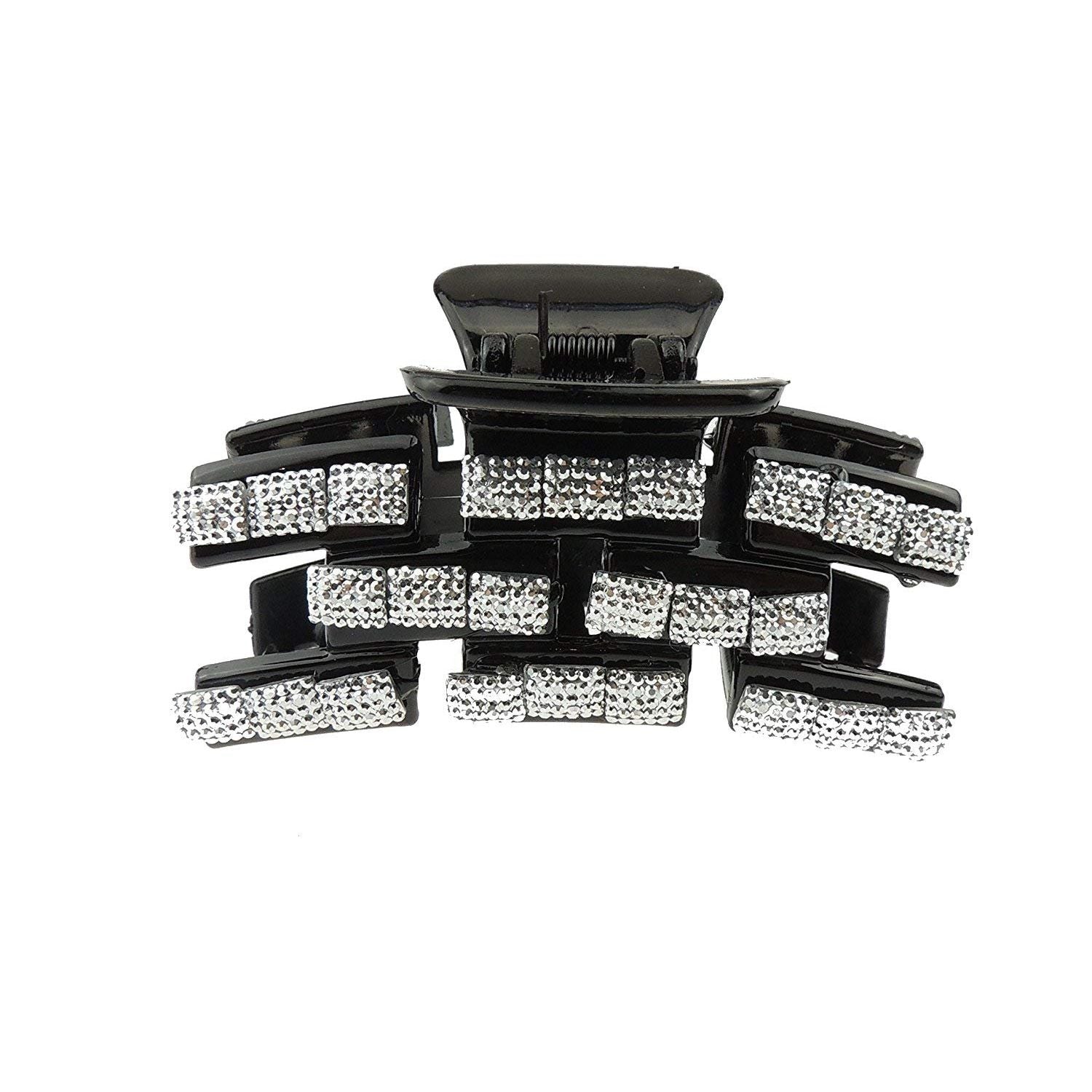 Glamour Girlz Ladies Black Grey Party Everyday Bulldog Crab Hair Claw Clamp Dashes. This stone hair clamp clip measures 8cm long and is perfect for women with long or shorter hair, thick or fine. This crystal clip is available in black with grey crystals. This black stone hair clip claw would make a lovely birthday, bridal shower, Valentine's Day or Christmas gift for your wife, girlfriend, mum, daughter or nan.