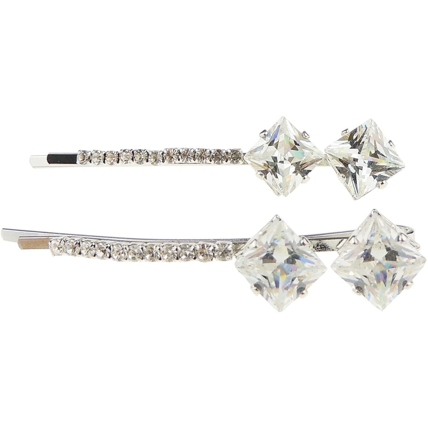 Glamour Girlz Sparkly Bridal Wedding Sparkly Crystal Diamante Clear Silver Tone Stone Pair of 2 Hair Grips Square