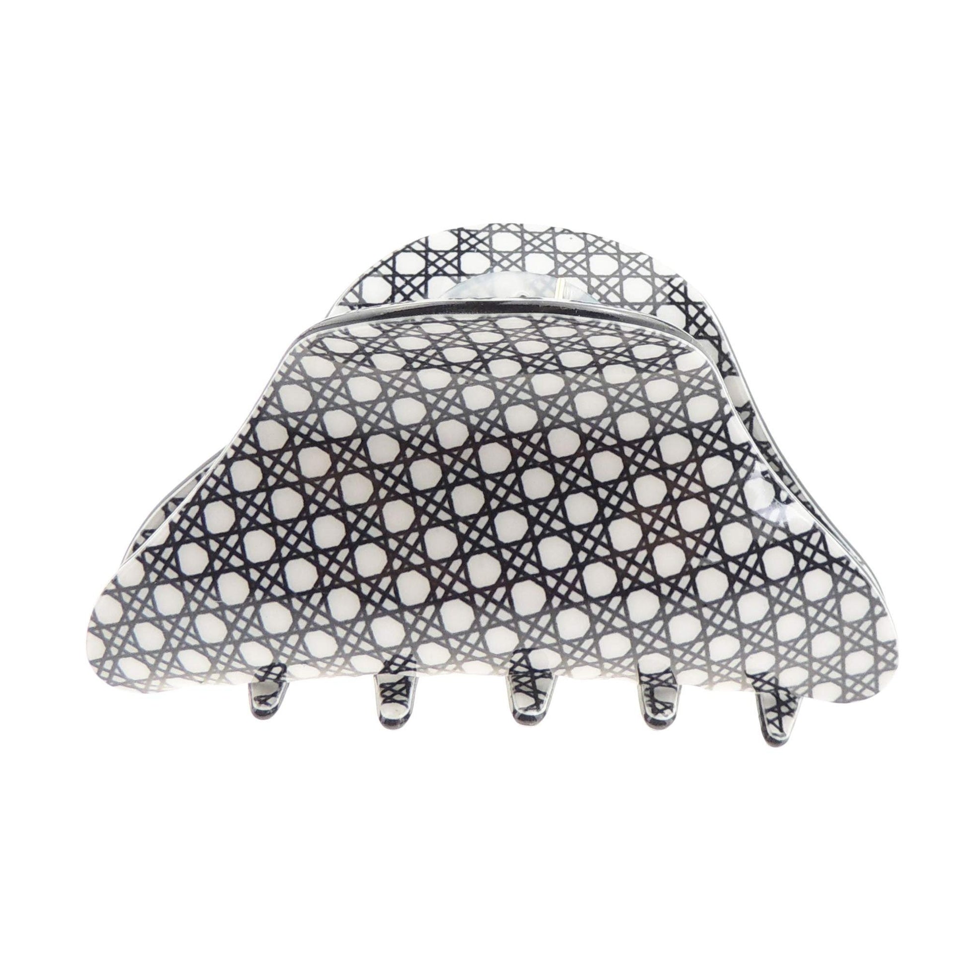 Glamour Girlz Womens Bulldog Crab Rounded Oval Hair Claw Clamp Black & White Geometric Print