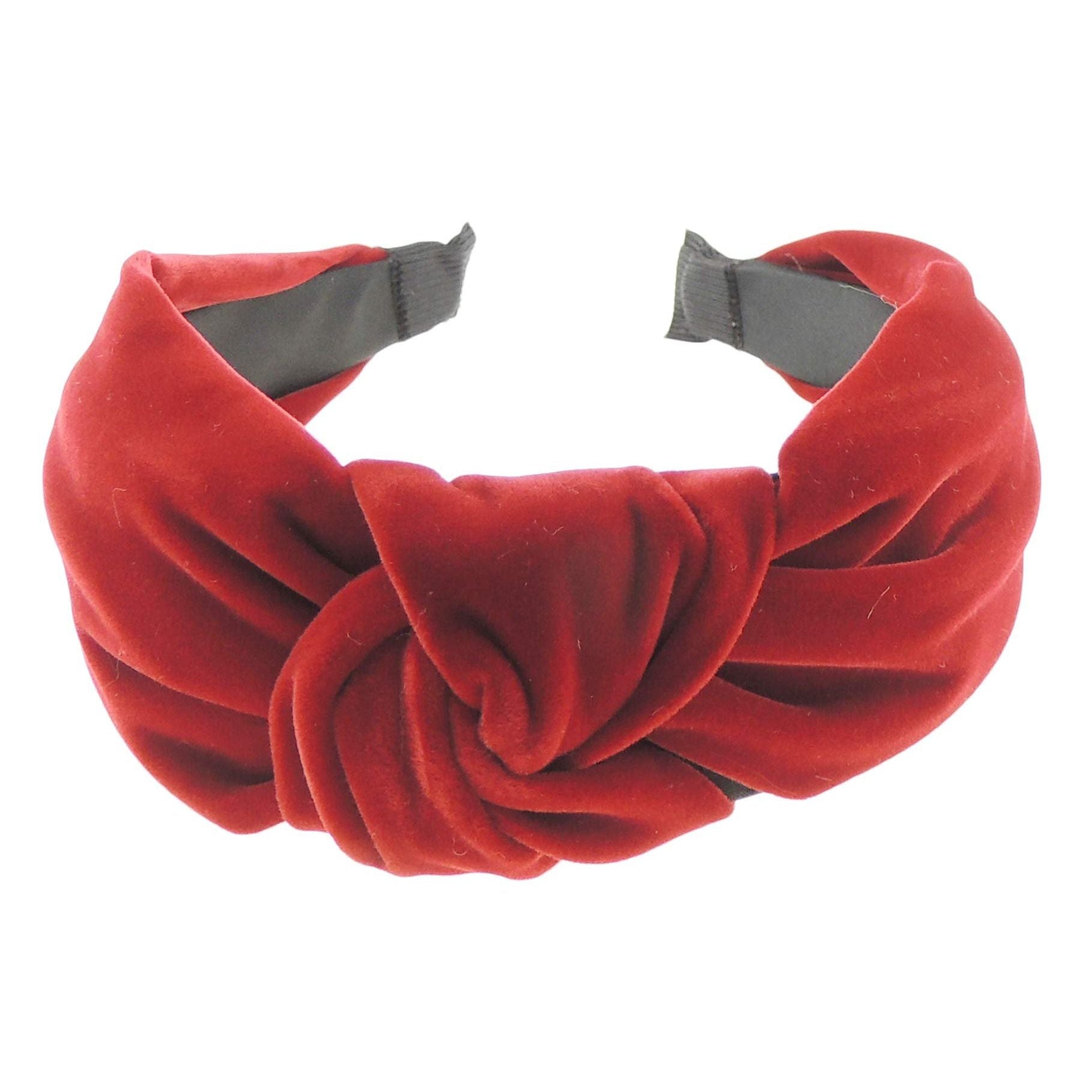 Womens Girls Wide Thick Knotted Top Knot Twist Twisted Velvet Turban Velvet Fabric Winter Accessory Wedding Guest Headpiece Formal Dance Christmas Party Birthday Headband Hair Alice Band (Burgundy)