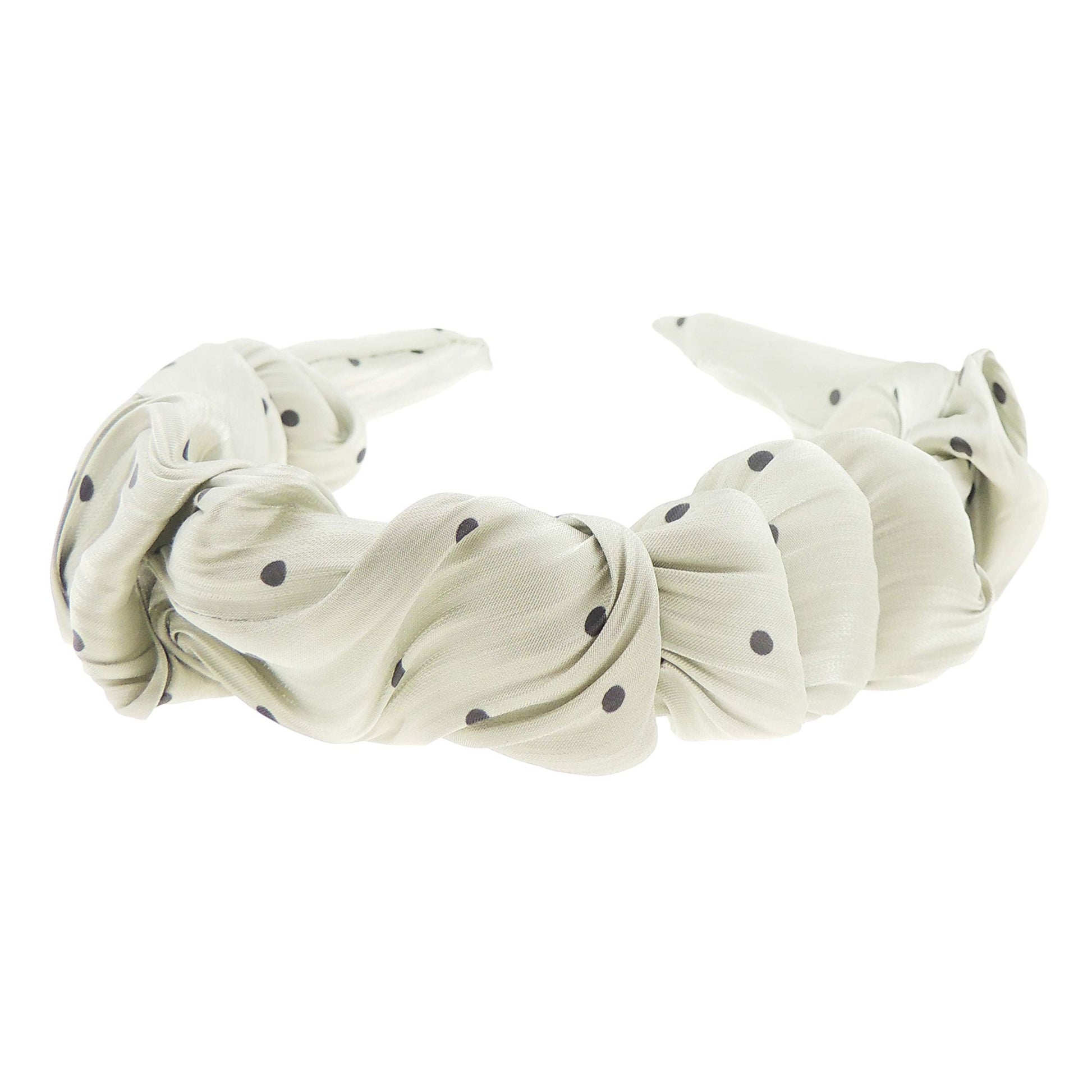 Womens Luxury Occasion Wedding Bridal Party Birthday Christmas Evening Ruched Gathered Organza Satin Covered Black Polka Dot Hair Hairband Accessories Headband Alice Band