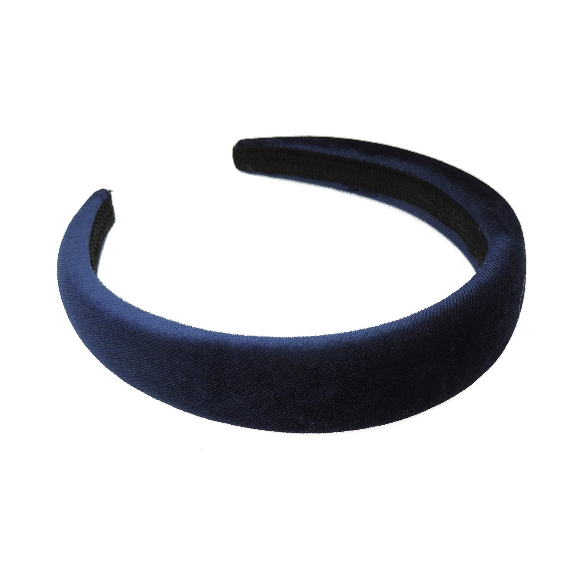 Womens Luxury Slightly Padded Puffy Velvet Flat Winter Evening Wedding Party Birthday Bridal Christmas Birthday Bridesmaid Headband Alice Band Hair Accessories Hairband (Navy, One Size)
