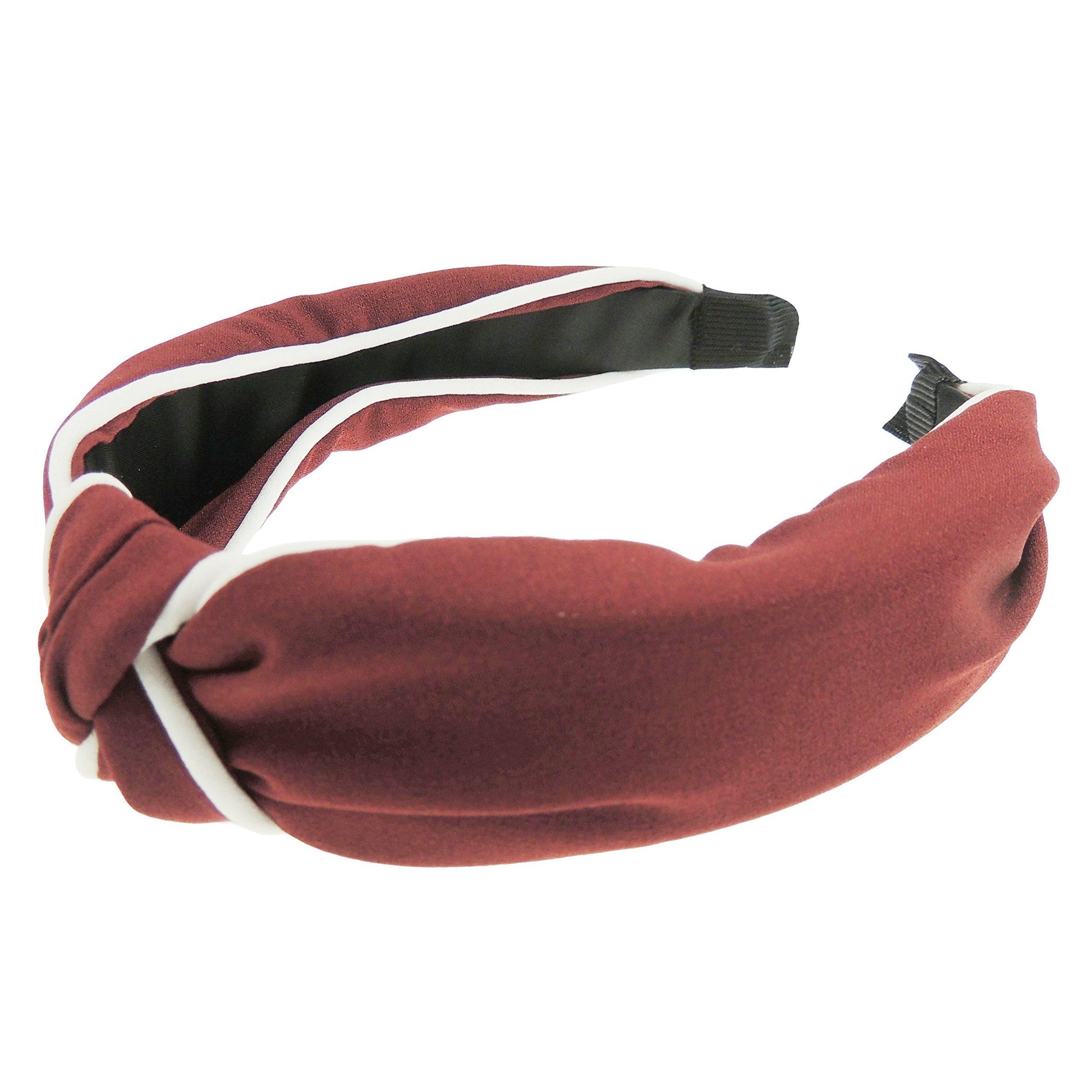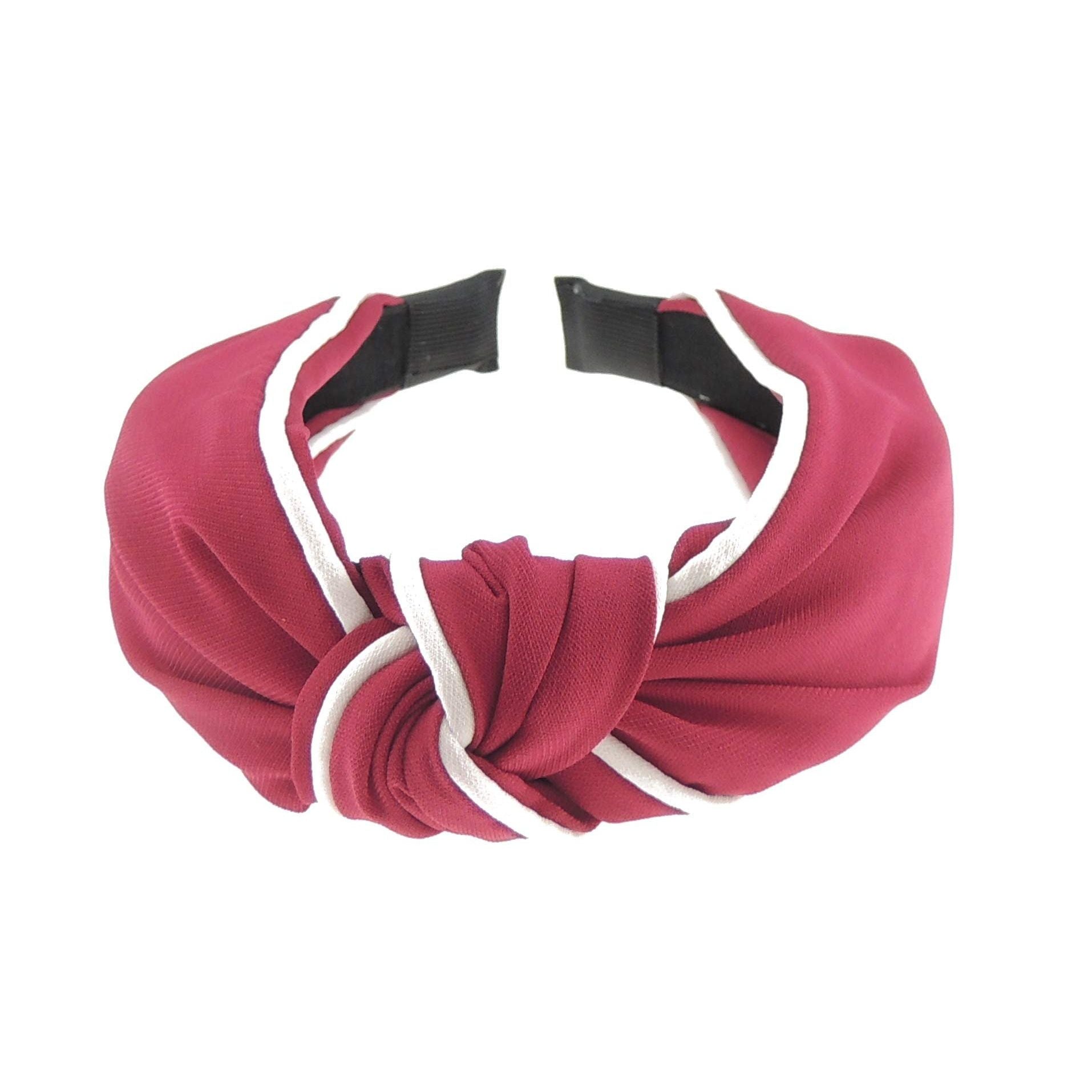 Womens Retro Boho White Edged Chiffon Work School Top Knot Knotted Twist Twisted Turban Vintage Headband Alice Band Hair Hairband For Christmas Birthday Wedding Guest Bridesmaid Party (Burgundy)